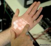 средств взаимодействия с техникой. Если можно приспособить для работы со, скажем, телефоном, некую постороннюю плоскость (есть технология, позволяющая превратить, скажем, стол, в интерактивную поверхность - тоже изобретение Криса Харрисона), рассудил он, почему бы не пойти дальше и не воспользоваться для этой цели той поверхностью, что всегда с нами - собственной кожей? Она всегда под рукой, к тому же человек, не отягощенный серьезными неврологическими проблемами, обладает способностью не глядя довольно точно попадать в конкретную точку своего организма пальцем, что, по идее, должно обеспечивать высокую точность ввода вслепую.